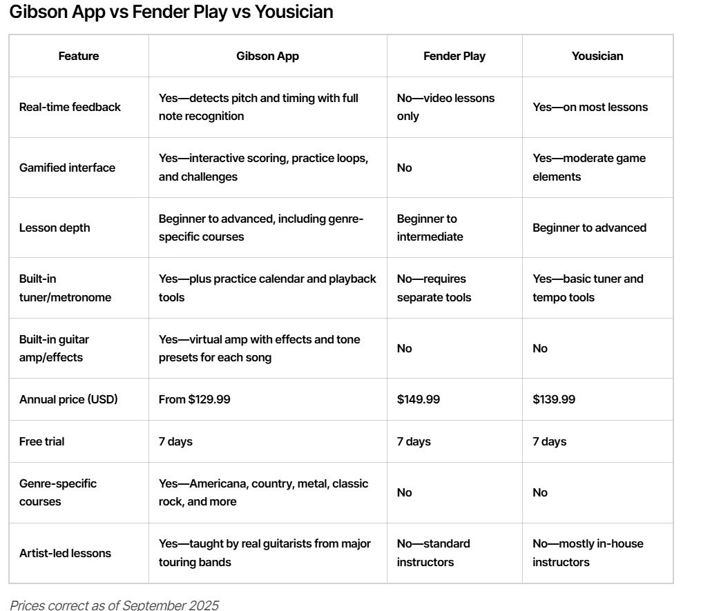 Wondering what the best guitar lesson app is? I compared the Gibson App to two of the most popular guitar lesson platforms today.